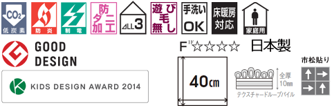やわらかな肌触り(スムース加工タイルカーペット品)カーペットだからこその、ふかふかな踏み心地&家族みんながゴロンと寝転びたくなる質感にこだわっています。