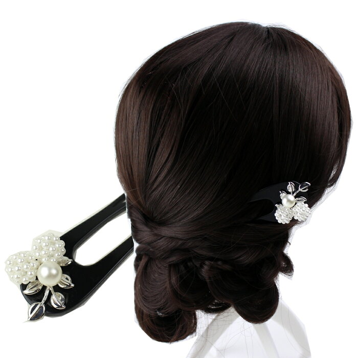 髪飾り 黒留袖 結婚式 成人式 振袖 浴衣 和装 バチ型簪 かんざし 南天パール 袴 卒業式 着物 入学式 ヘアアクセサリー ウェディング 前撮り パーティー 花しおり 黒 大原商店