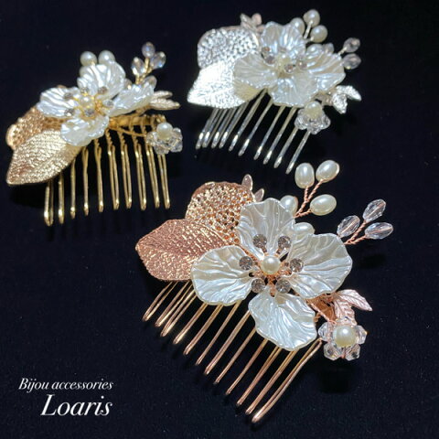 商品のご案内 商品説明 パールとラインストーンを1つ1つ丁寧に嵌め込んだコームタイプのパールフラワーピン。
