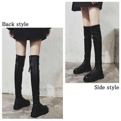 今日も良い1日を!厚みのあるソールが目を引くシンプルなオーバーニーブーツ。