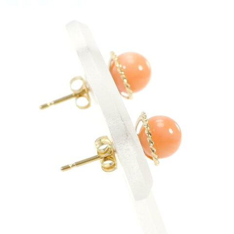 K18 18金 YG イエローゴールド ピアス サンゴ 総重量約0.8g ジュエリー 中古 送料無料 新品同様 【中古】【あす楽】 ギフトラッピング無料