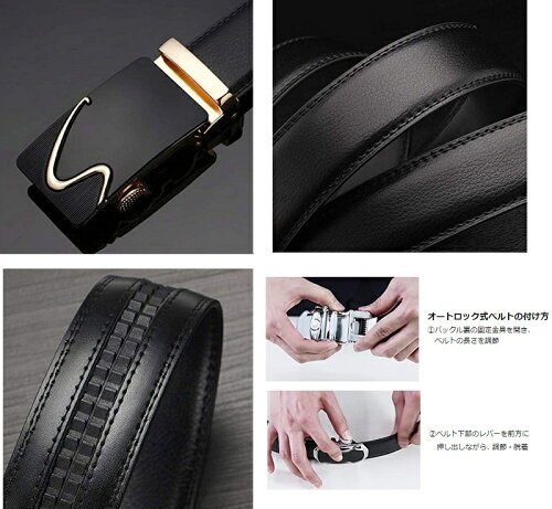 オートロック式ベルトの付け方 1.バックル裏の固定金具を開き、ベルトの長さを調節 2.ベルト下部のレバーを前方に押し出しながら、調節・脱着 商 品 仕 様 サイズ ベルト長さ120cm、幅3.5cm 素材 牛革、合金 保 証 に つ い て ■メーカー保証なし 記載の注意事項を除く初期不良品の場合のみ、商品到着から1週間以内のみ対応いたします。