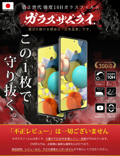 Galaxy A51 5G SC-54A SCG07 全面保護 ガラスフィルム 保護フィルム フィルム 全面吸着タイプ 10H ガラスザムライ ギャラクシーa51 全面 保護 液晶保護フィルム OVER`s オーバーズ 黒縁 TP01
