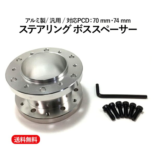 【サイズ】 厚み 50 mm外径 87 mm内径 55 mm 【材質】アルミ 【セット内容】 スペーサー × 1 ボルト × 6 レンチ × 1 【対応PCD】 70 mm / 74 mm ナルディ・Isotta・ Tekniq・MOMO・スパルコ・NRG等に対応します。