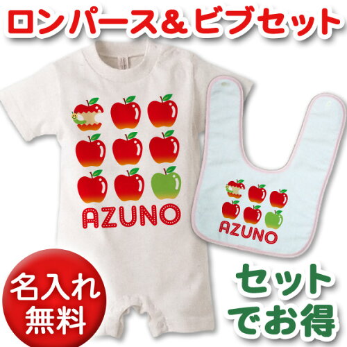 出産祝いに【名入れ無料】名前入り・半袖・長袖のロンパース&今治ビブ(スタイ/よだれかけ)セット・ポップデザイン りんご 男の子 女の子 百日祝い お七夜 【メール便対応】 送料無料 ココロコ