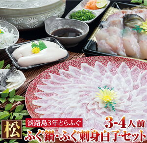 【ふるさと納税】【若男水産】【淡路島3年とらふぐ】松 ふぐ鍋・ふぐ刺身白子セット(3〜4人前)